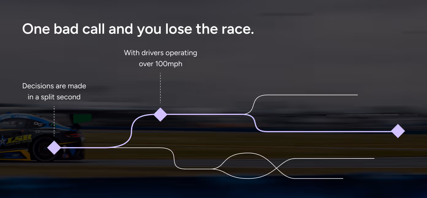Races are won on split-second decisions and the stakes keep getting higher every year. Thanks to Strategy F’s solution powered by AI, competitive teams will no longer have to rely on Excel sheets and passive timing tools for their drivers going over 100 mph.